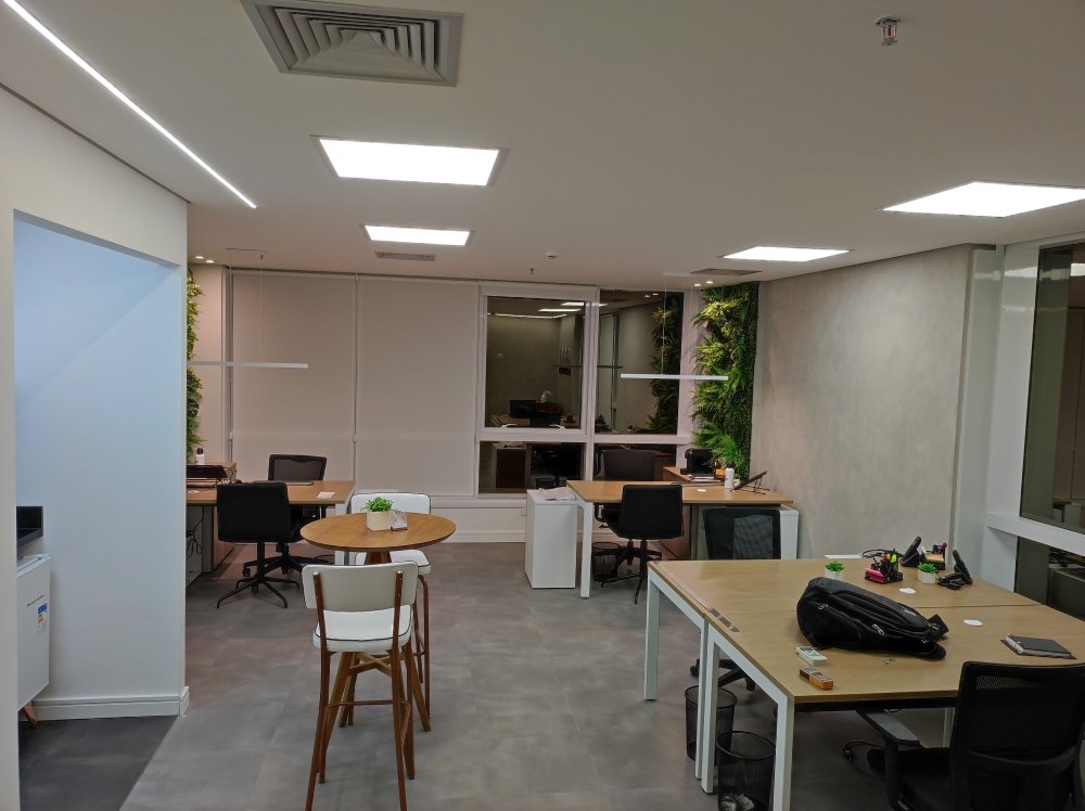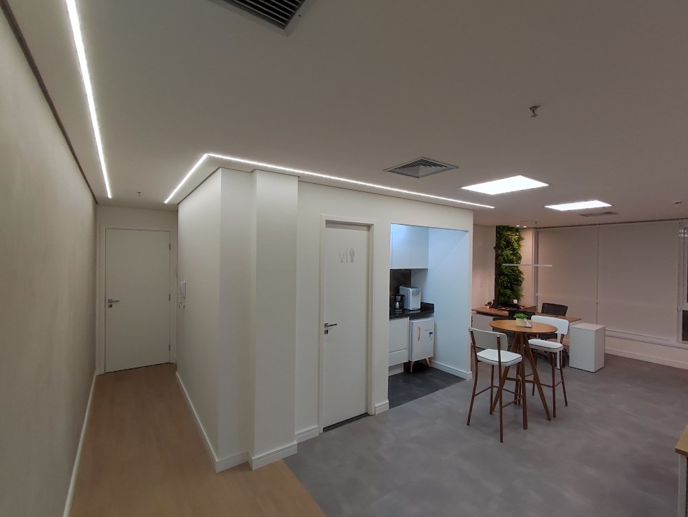 Desde o projeto de arquitetura até a entrega do projeto, fizemos uma pequena reforma para o cliente para poder receber seus clientes em um espaço novo, aconchegante e bem acabado. Fizemos pintura, elétrica, iluminação, rede, instalação de ar condicionado, piso vinílico, cimento queimado e assim entregamos esse espaço maravilhoso.